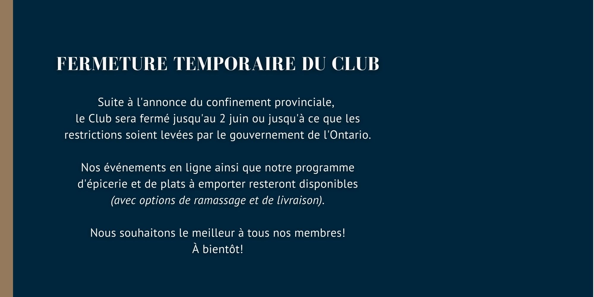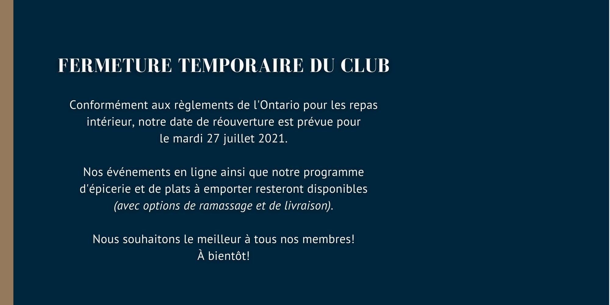 Si vous avez des questions, veuillez envoyer un courriel à reservations@rideauclub.ca ou appeler le Club au 613-233-7787.